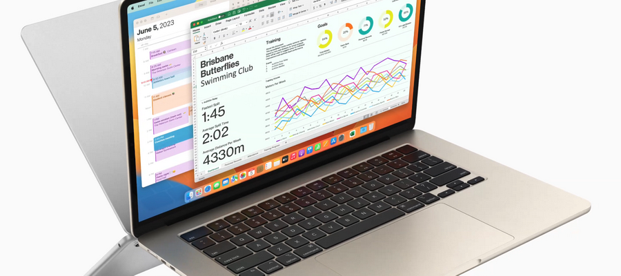 Apple เปิดตัว MacBook Air รุ่นหน้าจอ 15 นิ้ว (ขนาดโดยละเอียด 15.3 นิ้ว) จอภาพ Liquid Retina รุ่นใหม่ ความละเอียด 2880 x 1864 pixels (224 ppi) ความสว่างสูง 500 nit ขอบเขตสี P3 พร้อม เทคโนโลยี True Tone ที่มาพร้อมชิป M2 CPU 8‑core และ GPU 10‑core บางเพียง 11.5 มม. และเบาเพียง 1.51 กก. ขอบหน้าจอบางเพียง 5 มม. และมาพร้อมกล้องความละเอียด 1080P