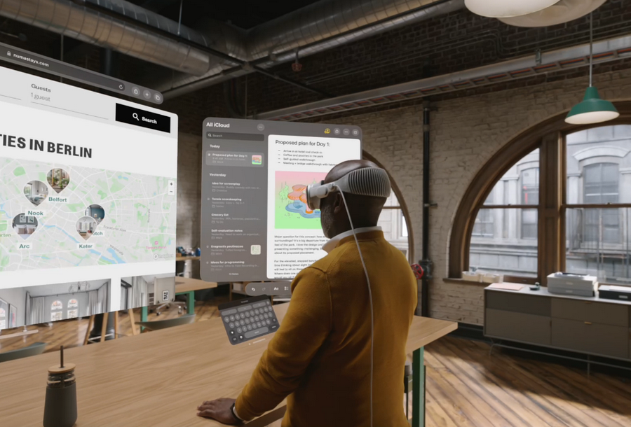ในส่วนของ App Store จะมีแอปสำหรับ visionOS สามารถเข้าถึงได้ผ่าน iPhone และ iPad ซึ่งสามารถใช้งานร่วมกับ Apple Vision Pro ได้เลย และรองรับเกมจาก Apple Arcade กว่า 100 เกม นอกจากนี้ยังรองรับ FaceTime และรองรับระบบเสียง Spatial Audio ผมว่าเวลาเราใช้จะดูเท่มากๆ เลยนะครับ และแน่นอนครับว่าเราสามารถใช้งานหลายๆ อย่าง ได้พร้อมๆ กัน แถมยังรองรับอุปกรณ์อย่าง Magic Keyboard และ Magic Trackpad ด้วยนะครับ ใช้ทำงานสะดวกเลย