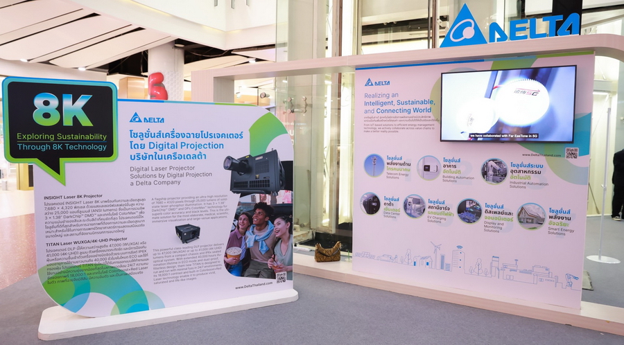 บมจ. เดลต้า อีเลคโทรนิคส์ (ประเทศไทย) ผู้ผลิตชั้นนำของโลกด้านโซลูชันการจัดการพลังงานและความร้อน จัดแสดงเครื่องโปรเจคเตอร์ INSIGHT Laser 8K คุณภาพสูงระดับโลกผ่านการฉายสารคดีความละเอียดระดับ 8K เรื่องแรกของประเทศไทย ณ ศูนย์การค้าเซ็นทรัลเวิลด์ โซน Central Court ชั้น 1 ระหว่างวันที่ 14-16 มิ.ย. 25666 โดยงาน “Exploring Sustainability Thorough 8K Technology” หรือ “สัมผัสความยั่งยืนผ่านเทคโนโลยี 8K” มีวัตถุประสงค์เพื่อส่งเสริมความยั่งยืนและวัฒนธรรมไทยสู่สายตาผู้ชมต่างชาติมากมาย ผ่านเทคโนโลยีการฉายภาพระดับโลกที่มีความคมชัดระดับ 8K ซึ่งดิจิทัล โปรเจกต์ชันส์ (Digital Projection) บริษัทในเครือของเดลต้า อีเลคโทรนิคส์ เป็นผู้ออกแบบและผลิตเครื่องโปรเจคเตอร์ดังกล่าว ทั้งนี้ยังได้รับเกียรติจากตัวแทนจากกระทรวงการท่องเที่ยวและกีฬา และการท่องเที่ยวแห่งประเทศไทย (ททท.) พร้อมด้วยแขกวีไอพีมาร่วมเปิดงานในครั้งนี้ด้วย