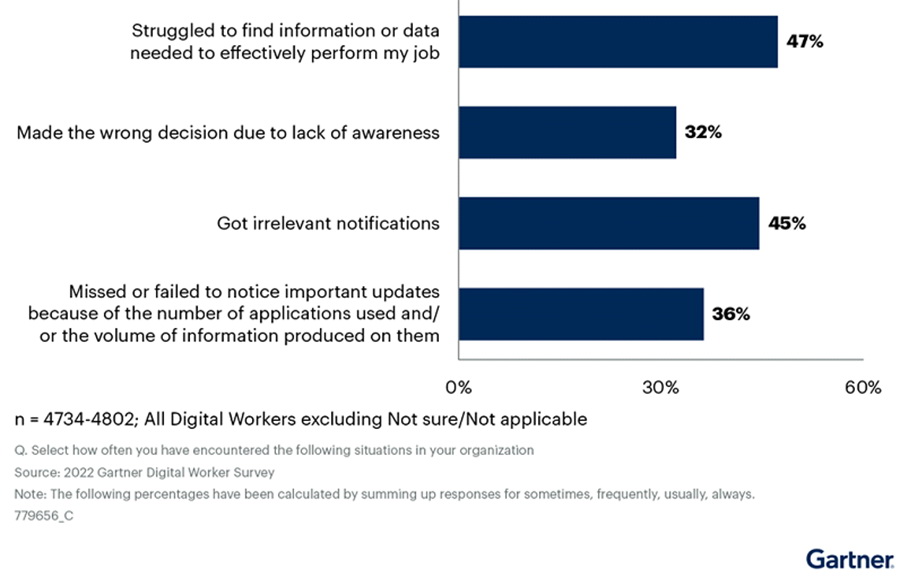 จากการสำรวจล่าสุดของการ์ทเนอร์ อิงค์ พบว่า 47% ของพนักงานดิจิทัลระบุว่าพวกเขาต้องพบกับความยุ่งยากไปกับการค้นหาข้อมูลที่จำเป็นเพื่อให้ได้งานที่มีประสิทธิภาพ
