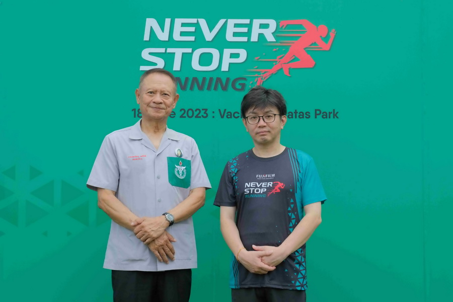 การจัดงาน FUJIFILM NEVER STOP Running 2023 นับเป็นการตอกย้ำพันธกิจของฟูจิฟิล์มในการพัฒนานวัตกรรมและโซลูชันทางการแพทย์ล้ำสมัยเพื่อสร้างเสริมสุขภาพที่ดีขึ้นให้คนในสังคม มร. โซ มารูโอะ กรรมการผู้จัดการ บริษัท ฟูจิฟิล์ม (ประเทศไทย) จำกัด เผยถึงความสำเร็จในการจัดงานการกุศลและการตอบรับอย่างดีเยี่ยมจากผู้เข้าร่วม โดยกล่าวว่า “เรายินดีเป็นอย่างยิ่งที่ได้จัดงาน FUJIFILM NEVER STOP Running 2023 เพื่อส่งเสริมสังคมสุขภาพดีพร้อมส่งมอบรายได้โดยไม่หักค่าใช้จ่ายให้แก่มูลนิธิแพทย์อาสาสมเด็จพระศรีนครินทราบรมราชชนนี (พอ.สว.) เป็นจำนวนทั้งสิ้น 587,800 บาท เพื่อสนับสนุนการทำงานอย่างทุ่มเทของบุคลากรทางการแพทย์ในการเดินทางออกตรวจสุขภาพให้แก่ผู้คนในถิ่นทุรกันดาร เราภาคภูมิใจที่ได้ร่วมเป็นส่วนหนึ่งในการช่วยเหลือสังคมไทย” นอกจากนี้ กิจกรรมในครั้งนี้ยังส่งเสริมการสร้างความตระหนักรู้เกี่ยวกับความสำคัญของการตรวจสุขภาพเป็นประจำเพื่อเพิ่มโอกาสในการพบโรคได้อย่างทันท่วงทีอีกด้วย