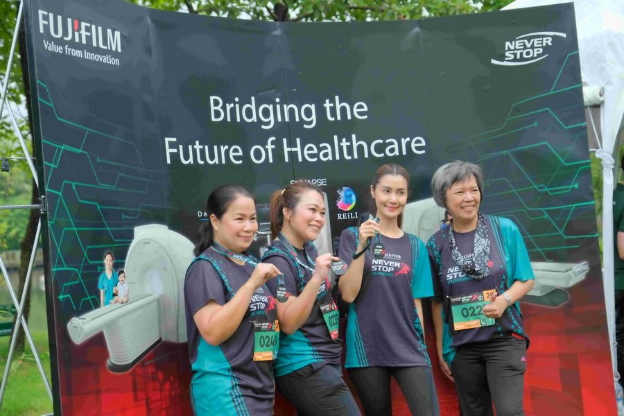บริษัท ฟูจิฟิล์ม (ประเทศไทย) จำกัด ผู้นำด้าน One-stop, Total Healthcare Solution ชูความสำเร็จในการจัดกิจกรรม “FUJIFILM NEVER STOP Running 2023” งานมินิมาราธอนการกุศลสุดยิ่งใหญ่ ณ สวนวชิรเบญจทัศ (สวนรถไฟ) รวมตัวนักวิ่งและเหล่าคนรักสุขภาพรวม 1,200 คนที่มาร่วมออกกำลังกายเป็นส่วนหนึ่งของโครงการดี ๆ เพื่อสังคม โดยฟูจิฟิล์ม ประเทศไทย ได้มอบรายได้ทั้งหมดจากการจัดกิจกรรมโดยไม่หักค่าใช้จ่ายให้แก่มูลนิธิแพทย์อาสาสมเด็จพระศรีนครินทราบรมราชชนนี (พอ.สว.) เพื่อสนับสนุนการทำงานของบุคลากรทางการแพทย์และช่วยเหลือผู้ป่วยในพื้นที่ห่างไกล สอดคล้องกับแคมเปญระดับโลก NEVER STOP ของฟูจิฟิล์มที่เปิดตัวเมื่อปี 2018 ภายใต้เป้าหมายในการสร้างสรรค์สังคมที่ดีขึ้น พร้อมขับเคลื่อนอนาคตที่ยั่งยืนด้วยนวัตกรรมที่ช่วยสร้างโลกที่ดีขึ้น ในฐานะผู้ให้บริการโซลูชันแฮลท์แคร์ที่ครบวงจร ฟูจิฟิล์มนำเสนอไลน์อัพผลิตภัณฑ์อันล้ำสมัยที่ครอบคลุมโซลูชันเพื่อการวินิจฉัยทางการแพทย์ อาทิ เครื่องเอกซเรย์, CT และ MRI, โซลูชันไอทีและ AI, ระบบส่องกล้อง (Endoscopy), อัลตราซาวน์ และเครื่องมือการแพทย์สำหรับวินิจฉัยภาพนอกร่างกาย (IVD) ซึ่งล้วนช่วยขับเคลื่อนการตรวจพบโรคได้อย่างรวดเร็วและทันท่วงที พร้อมยกระดับการรดูแลรักษาในวงการสาธารณสุข