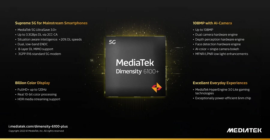 ชิปเซ็ต Dimensity 6100+ ยังมีคุณสมบัติอันโดดเด่นอีกมากมาย ได้แก่