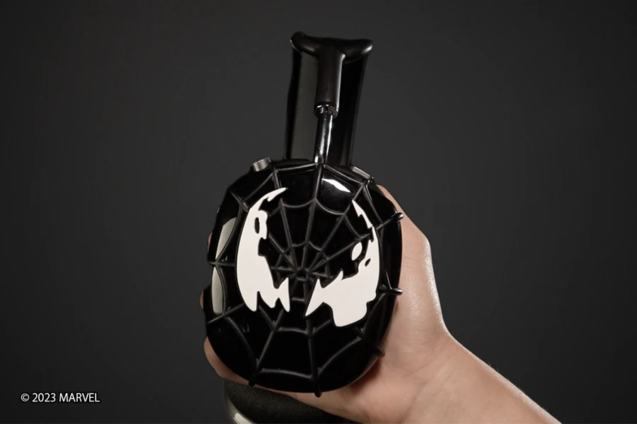 เคส AirPods Max รุ่นพิเศษมีฟังก์ชั่น Snap on ที่ใช้งานง่าย ด้วยตัวเลือก 2 สี ได้แก่ สีดำสำหรับเคส AirPods Max รุ่น Venom และสีเงินสำหรับเคส AirPods Max รุ่น Spider-Man โดดเด่นด้วยลวดลายซิกเนอเจอร์หน้ากากของ Spider-Man ที่เป็นที่รู้จักกันดี และ Venom ซึ่งอยู่บนใยแมงมุมอันเป็นเอกลักษณ์