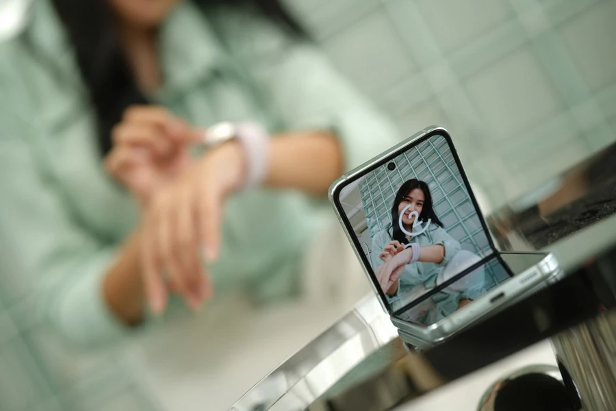 จะดีแค่ไหน ถ้าทุกคนสามารถโพสต์ท่าได้แบบหนำใจ ไม่ว่าจะเป็นการเซลฟี่หรือการถ่าย Group Shot ไม่ต้องห่วงว่าใครจะเป็นคนกดถ่าย Galaxy Z Flip5 ขึ้นชื่อในเรื่องการเป็น Best Flex Cam เพราะสามารถตั้งถ่ายได้ทุกมุมแบบไม่ต้องถือ กางได้ทุกองศาด้วยบานพับ Flex Hinge ที่แข็งแรงกว่าเดิม และด้วยจอนอกที่ใหญ่ขึ้น ช่วยให้การถ่ายภาพเซลฟี่ผ่านกล้องหลังประสิทธิภาพสูงเป็นไปได้อย่างดีเยี่ยม นอกจากนี้ยังมีฟีเจอร์ FlexCam ที่จะช่วยให้ทุกคนถ่ายภาพสวยน่าทึ่งจากมุมกล้องที่สร้างสรรค์ได้โดยไม่ต้องแตะตัวสมาร์ทโฟนอีกด้วย ถูกใจสาย Hands-Free สุดๆ แต่ถ้าหากมี Galaxy Watch6 series ควบคู่ไปด้วยนั้น จะช่วยให้การถ่ายรูปง่ายและสะดวกกว่าเดิม เพราะสามารถถ่ายภาพผ่านการสั่งงานบน Galaxy Watch6 series รวมถึงการเปลี่ยนโหมด เปลี่ยนมุม รวมทั้งการซูม และสามารถดูภาพพรีวิวที่เหมือนกับในจอสมาร์ทโฟนได้ที่ข้อมือเลย ช่วยให้ผู้ใช้งานเช็คภาพ จัดมุม ถ่ายภาพได้อย่างต่อเนื่อง เซฟเวลา ถ่ายได้เยอะและสนุกกว่าเดิม
