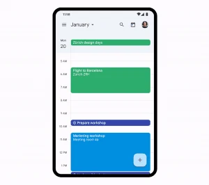 แอปฯ Google Calendar เปิดตัวเลย์เอาท์แบบใหม่ที่สามารถปรับเปลี่ยนได้อย่างสมบูรณ์แบบ ซึ่งช่วยให้ผู้ใช้งานสามารถดูข้อมูลต่างๆ พร้อมกันบนหน้าจอขนาดใหญ่ได้และผู้ใช้งานสามารถดูปฏิทินแบบรายเดือนได้ที่หน้าจอด้านซ้าย หรือรายละเอียดกิจกรรมประจำวันต่างๆ ที่หน้าจอด้านขวา รวมไปถึงแถบเครื่องมือด้านบนทำให้ง่ายต่อการสลับไปมาระหว่างมุมมองต่างๆ เช่น วัน สัปดาห์ เดือน ซึ่งแอปฯ นี้ยังเปลี่ยนจากหน้าจอด้านนอกของโทรศัพท์แบบพับได้ ไปยังหน้าจอด้านในเมื่อกางออกได้อย่างราบรื่นไม่มีสะดุด