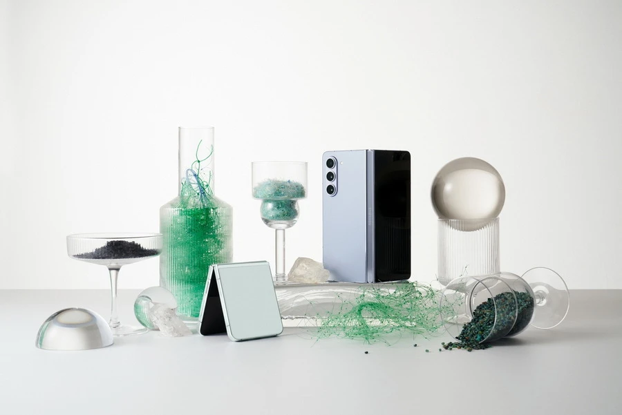 เช่นเดียวกับสมาร์ทโฟนหน้าจอพับได้รุ่นก่อนหน้าที่พัฒนามาอย่างต่อเนื่องในการออกแบบ Galaxy Z series โดยใช้นวัตกรรมที่สามารถช่วยสร้างอนาคตที่ยั่งยืนกว่าเดิมได้ โดยรวมไปถึงการใช้ส่วนประกอบต่างๆ ที่เป็นมิตรกับสิ่งแวดล้อมในทุกจุดทั้งตัวเครื่องและอุปกรณ์ต่างๆ ของ Galaxy Z Flip5 และ Galaxy Z Fold5 โดยใช้มากกว่ารุ่นก่อนหน้าและใช้วัสดุรีไซเคิลทั้งจากอลูมิเนียมหรือกระจกรีไซเคิลที่ไม่ผ่านการใช้งาน รวมถึงพลาสติกรีไซเคิลที่ผ่านการใช้งานแล้วซึ่งวัสดุที่เป็นมิตรต่อสิ่งแวดล้อมเหล่านี้มาจากทั้งถังน้ำ อวนจับปลา และขวด PET