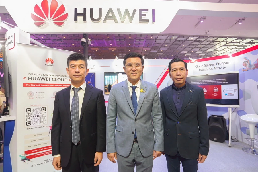 นายชัยวุฒิ ธนาคมานุสรณ์ รัฐมนตรีว่าการกระทรวงดิจิทัลเพื่อเศรษฐกิจและสังคม (MDES) (ที่ 2 จากซ้าย) และ ผศ.ดร.ณัฐพล นิมมานพัชรินทร์ ผู้อำนวยการใหญ่ สำนักงานส่งเสริมเศรษฐกิจดิจิทัล (ขวาสุด) เยี่ยมชมบูธจัดแสดงของหัวเว่ย ภายในงาน “HACKaTHAILAND 2023: DIGITAL INFINITY”ในด้านการเสริมสร้างอีโคซิสเต็มทางดิจิทัล ทางสำนักงานส่งเสริมเศรษฐกิจดิจิทัล (depa) และหัวเว่ย ได้ร่วมกันลงนาม ในบันทึกความเข้าใจ (MOU) เพื่อเดินหน้าร่วมขับเคลื่อนศูนย์นวัตกรรมประเทศไทย (Thailand Innovation Center) ซึ่งมีเป้าหมายเพื่อผสานความร่วมมือ ของทั้งภาครัฐและเอกชน เพื่อส่งเสริมการบริการทางด้านดิจิทัลผ่านการใช้เทคโนโลยีคลาวด์ AI และบิ๊กดาต้า รวมถึงการบ่มเพาะบุคลากรดิจิทัลรุ่นใหม่ ผ่าน Huawei Spark Incubator Program และ Huawei Developer Program นอกจากนี้ หัวเว่ยประเทศไทยยังได้จัดบูธภายในงาน HACKaTHAILAND 2023: DIGITAL INFINITY เพื่อยกระดับ ความเข้าใจและทักษะทางเทคโนโลยีให้กับคนรุ่นใหม่และผู้คนที่สนใจ เพื่อเตรียมความพร้อมกับโลกในอนาคต ที่เทคโนโลยีดิจิทัลจะเข้ามามีบทบาทในทุกแง่มุมของชีวิต