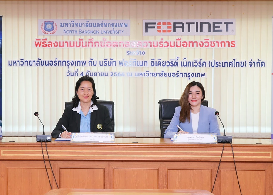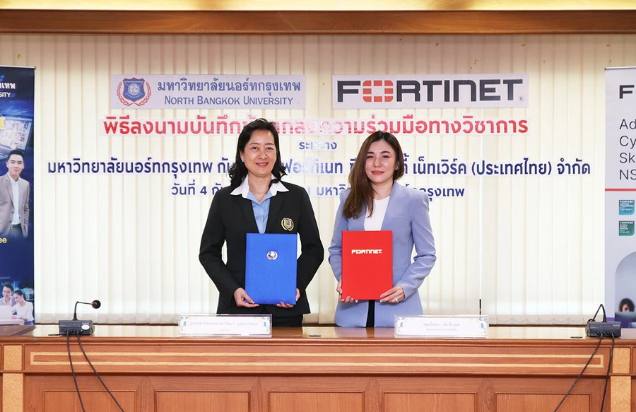 ฟอร์ติเน็ต ผู้นำระดับโลกด้านโซลูชันการรักษาความปลอดภัยทางไซเบอร์แบบอัตโนมัติและครบวงจร ได้ลงนามในบันทึกความร่วมมือกับมหาวิทยาลัยนอร์ทกรุงเทพ วิทยาเขตสะพานใหม่ ในการส่งมอบ Labs การเรียนรู้ด้านการป้องกันภัยบนไซเบอร์ (Security Academy Program) เพื่อการเรียนการสอนโดยไม่คิดมูลค่า พร้อมแต่งตั้งมหาวิทยาลัยนอร์ทกรุงเทพ เป็นพันธมิตรทางวิชาการในโครงการ Academic Partner Program ของสถาบัน Fortinet Training Institute ด้วยจุดมุ่งหมายในการผลิตกำลังพลคนรุ่นใหม่ด้านไซเบอร์ซีเคียวริตี้