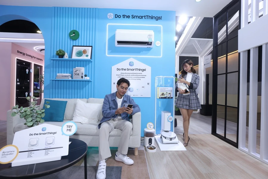 ภายในงานซัมซุงจำลองบ้าน Smart Home Energy รักษ์โลกแบบสมาร์ท ฉลาดประหยัดไฟ ด้วย AI Energy Mode ใน SmartThings นวัตกรรมที่ช่วยวางแผนและติดตามการใช้พลังงานของเครื่องใช้ไฟฟ้าทุกชิ้น ปลูกฝังการดูแลสิ่งแวดล้อมและบริหารการใช้ไฟฟ้าอย่างมีประสิทธิภาพ AI Energy Mode เป็นโหมดประหยัดพลังงานอัจฉริยะ ที่ช่วยลดพลังงาน ช่วยตัดค่าไฟได้สูงสุด 70% สำหรับเครื่องซัก-อบผ้า, 25% สำหรับทีวี, 20% สำหรับเครื่องปรับอากาศและ 7% สำหรับตู้เย็น เป็นหนึ่งในฟีเจอร์บนแอปพลิเคชัน SmartThings ที่โหลดได้ทั้ง Android และ IOS โดยจะมี AI คอยวิเคราะห์ปัจจัยต่างๆ ทั้งนอกบ้านและภายในบ้าน รวมถึงพฤติกรรมของผู้ใช้เพื่อปรับการทำงานของเครื่องใช้ไฟฟ้าอัติโนมัติเพื่อประสิทธิภาพสูงสุด และยังสามารถเข้าไปตรวจสอบค่าไฟได้แบบ Real Time หรือประเมินค่าไฟต่อเดือนรวมไปถึงเสนอทางเลือกในการประหยัดพลังงานให้กับผู้ใช้ ประหยัดเงินผ่านการแจ้งเตือนและเคล็ดลับคำแนะนำที่เป็นประโยชน์ เช่น รับการแจ้งเตือนหากเปิดเครื่องทิ้งไว้โดยไม่ตั้งใจได้จากทุกที่ ทุกด้วยสัมผัสเดียว หรือแค่เปิดระบบ นอกจากนี้ SmartThings ยังใช้งานง่ายและไม่ซับซ้อน ด้วยศักยภาพของแอปฯ ที่ถูกสร้างมาเพื่อรองรับการเชื่อมต่อและเข้ากันได้ดีกับอุปกรณ์ Smart Home IoT ได้หลากหลายแบรนด์ไม่ใช่แค่ซัมซุง โดยบ้าน Smart energy home แบ่งออกเป็น 3 ส่วนดังนี้