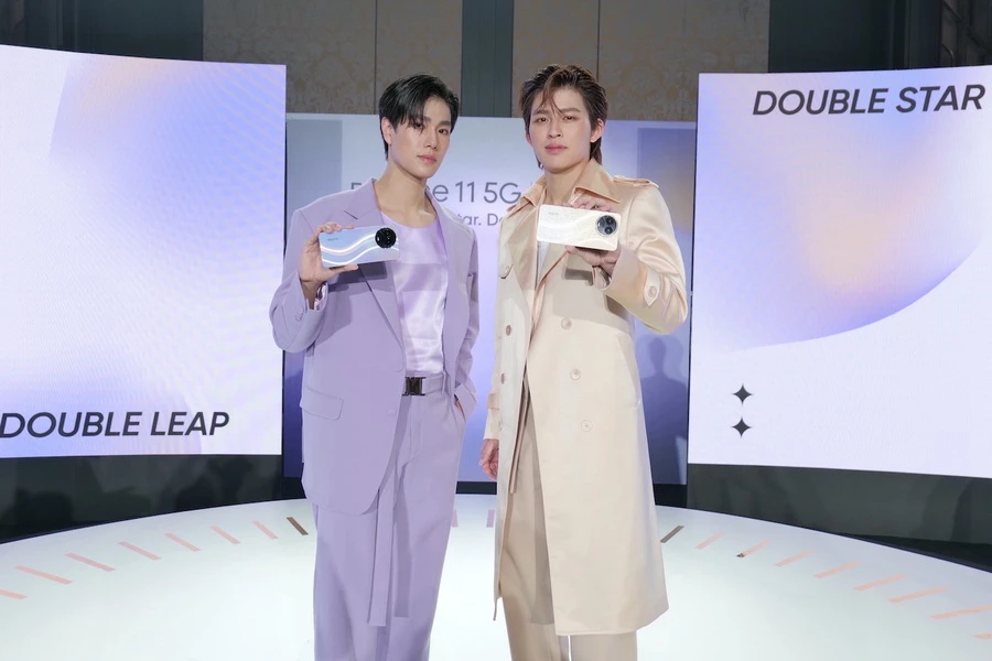นอกจากการเป็นผู้นำเทคโนโลยีที่พร้อมมอบประสบการณ์อันก้าวกระโดดจากสมาร์ตโฟนทั้ง 2 รุ่นแล้ว realme ยังคงมุ่งมั่นที่จะมอบประสบการณ์ที่ก้าวกระโดดให้กับคนรุ่นใหม่อยู่เสมอ จึงเปิดตัวสองพรีเซนเตอร์ “ปอนด์-ณราวิชญ์ เลิศรัตน์โกสุมภ์” และ “ภูวินทร์ ตั้งศักดิ์ยืน” ผู้เป็นไอคอนของคนรุ่นใหม่ โดยสำหรับหนุ่มปอนด์ ถือเป็นผู้ชนะเลิศจากการประกวดค้นหานักแสดงหน้าใหม่ และหนุ่มภูวินทร์ ยังได้รับรางวัลนักแสดงหน้าใหม่ดีเด่นและด้วยความเพอร์เฟกต์และสมบูรณ์แบบอีกทั้งยังประสบความสำเร็จในเวลาอันรวดเร็วจึงเข้ากับความเป็น Double Star แบบเพอร์เฟกต์