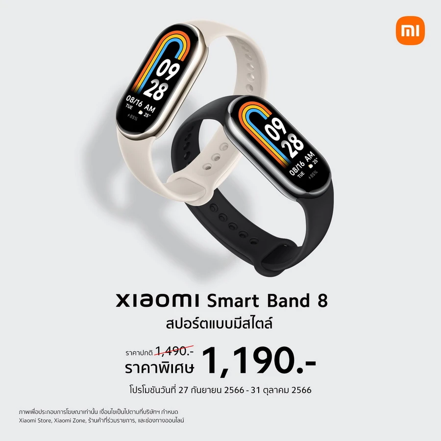Xiaomi Smart Band 8 มีให้เลือก 2 สี ได้แก่ Graphite Black และ Gold วางจำหน่ายแล้ววันนี้ในราคา 1,490 บาท ที่ Xiaomi Store และร้านตัวแทนจำหน่ายที่ร่วมรายการทั่วประเทศ รวมถึงช่องทางการจัดจำหน่ายทางออนไลน์แพลตฟอร์ม