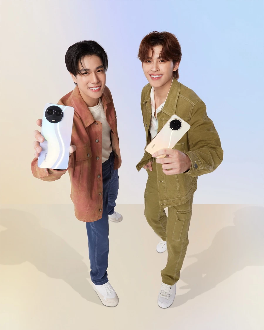 และหนุ่มภูวินทร์เล่าถึงระบบชาร์จ 67W SUPERVOOC ใน realme 11 5G “บางทีเราก็มัวแต่ทำงานจนลืมชาร์จโทรศัพท์ไว้ แต่ด้วยระบบชาร์จเร็ว 67 วัตต์ ผมชาร์จไว้แปปเดียว ถ่าย TVC ไปไม่ถึงชั่วโมงแบตเตอรี่ก็เต็มแล้ว พร้อมลุยยาว ๆ ได้ทั้งวันครับ” และสองหนุ่มยังใจตรงกัน โดยพูดเป็นเสียงเดียวกันว่าชื่นชอบดีไซน์ของทั้งสองรุ่นมาก โดยครั้งนี้ “realme 11 5G และ realme 11x 5G” นำเสนองานดีไซน์แบบ Unisex ใครถือก็โดดเด่นพรีเมียมทุกเพศทุกวัย ด้วยดีไซน์ระดับมาสเตอร์ Glory Halo โดยออกแบบโมดูลกล้องให้เหมือนวงแหวนกรอบหน้าปัดนาฬิกา Bazel Ring ที่หรูหรา พร้อมเอ็ฟเฟกต์แสง S-Curve สร้างประกายที่งดงามบนฝาหลังที่สวยงามสะดุดตาทุกมุมมอง สองหนุ่มเล่าว่า “ตอนเห็นในรูปก็คิดว่าสวยแล้ว แต่พอได้จับและถืออยู่ในมือก็รู้สึกว่าเข้ากับไลฟ์สไตล์ของพวกผมมาก ใน TVC ของปอนด์จะเป็นรุ่น realme 11 5G สี Gloly Gold และของภูวินทร์เป็นรุ่น realme 11x 5G สี Purple Dawn ซึ่งบอกเลยว่าทั้งสองรุ่นมีลูกเล่นของฝาหลังเวลาสะท้อนกับแสงต่าง ๆ รู้สึกพรีเมียมและเกินราคาไปมากเหมือนกัน ชอบมาก ๆ เลยครับ”