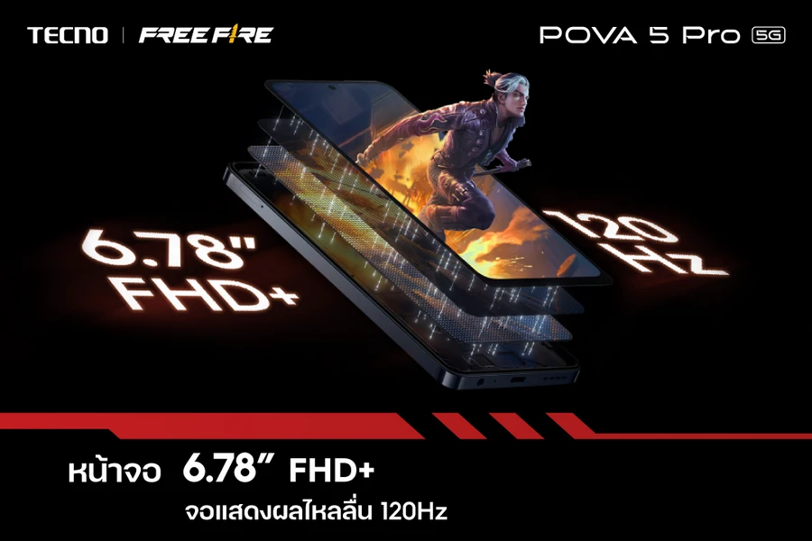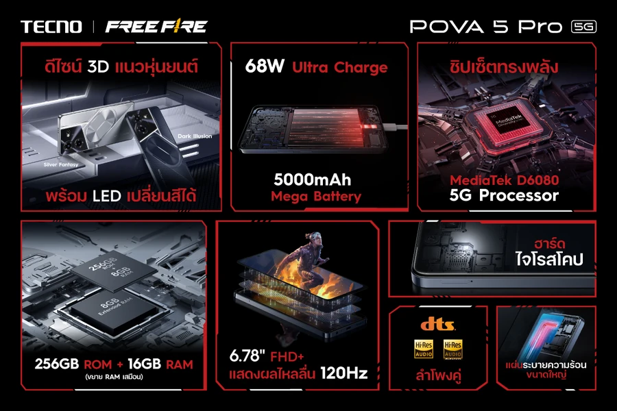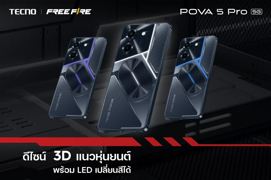 เทคโน ประเทศไทย เปิดตัว POVA 5 Pro สมาร์ตโฟนสเปกเกมมิ่งรุ่นใหม่ล่าสุดใน POVA Series อัปเกรดประสิทธิภาพการระบายความร้อนเต็มระบบ สปีดขั้นสุดทุกสเปกด้วยชิปเซ็ต Dimensity 6080 5G ชาร์จไว 68W Ultra Charge หน้าจอแสดงผล 120Hz วางจำหน่ายอย่างเป็นทางการแล้ววันนี้พร้อมเขย่าราคาตลาดสมาร์ตโฟน 5G ในราคาเริ่มต้น 6,699 บาท