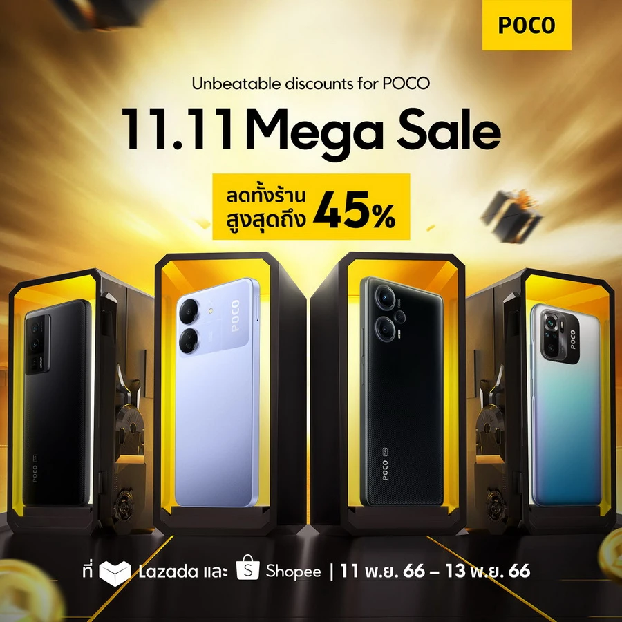 พบกับสินค้าของ POCO อีกมากมายในเทศกาลช้อปปิ้ง 11.11 ระหว่างวันที่ 11-13 พฤศจิกายน 2566 บนช่องทางจำหน่าย Shopee และ Lazada