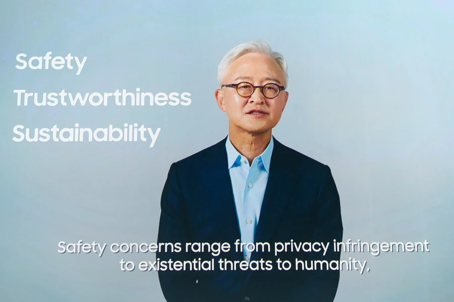 คเย ฮยุน คยุง ประธานและประธานเจ้าหน้าที่บริหารของแผนกโซลูชันอุปกรณ์ ซัมซุงอิเลคโทรนิคส์ กล่าวในตอนหนึ่งของคำกล่าวเปิดงานว่า “ในช่วงไม่กี่เดือนที่ผ่านมา เทคโนโลยี Generative AI เป็นสิ่งที่กำลังถูกจับตามอง เนื่องจากเทคโนโลยีนี้ช่วยเสริมศักยภาพให้เราสามารถค้นพบโซลูชันใหม่ๆ หรือแก้ไขอุปสรรคที่แก้ไขไม่ได้มานาน อย่างไรก็ดีความต้องการในการวิจัยเชิงลึกทั้งด้านความปลอดภัย ความน่าเชื่อถือ และความยั่งยืนของ AI นั้นก็เพิ่มสูงขึ้นไปพร้อมกันด้วย”