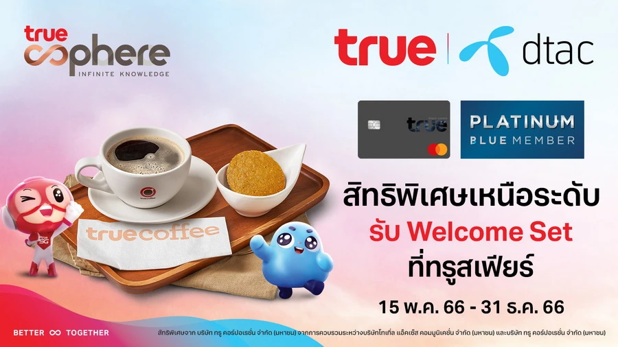 • พิเศษเฉพาะ ลูกค้าทรูแบล็ค และดีแทค PLATINUM BLUE MEMEBER ก็เข้ารับบริการทรูสเฟียร์ First-class Co Working Space ฟรี! พร้อมกดรับ Welcome Set เครื่องดื่มทรูคอฟฟี่ และของว่างรองท้องได้สบายๆ