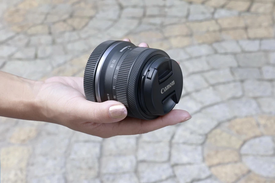 Canon RF-S10-18mm f/4.5-6.3 IS STM เป็นเลนส์ซูมมุมกว้างพิเศษ (Ultra-wide-angle) รุ่นใหม่ที่พัฒนามาสำหรับกล้อง APS-C EOS R โดยมีขนาดกะทัดรัดเพียง 44.9 มม. และมีน้ำหนักเบาราว 150 กรัม มอบทางยาวโฟกัสเทียบเท่าฟูลเฟรมที่ระยะ 16-29mm จึงครอบคลุมมุมมองกว้างมากเป็นพิเศษ เหมาะสำหรับการบันทึกภาพในที่แคบ โดยสามารถเก็บภาพได้ทั้งการถ่าย vlog และทิวทัศน์โดยรอบได้ในเฟรมเดียวกัน ทำให้ไม่จำเป็นต้องใช้ไม้เซลฟี่