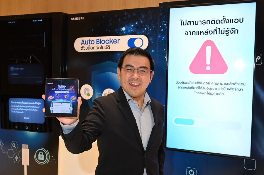 “ซัมซุงในฐานะผู้นำด้านเทคโนโลยีได้เล็งเห็นถึงปัญหาการโจรกรรมทางไซเบอร์ที่เกิดขึ้นอย่างต่อเนื่อง ซึ่งสร้างความสูญเสียทางทรัพย์สินและจิตใจให้กับประชาชน เราได้มีการพัฒนานวัตกรรมล้ำสมัยอย่างต่อเนื่อง โดยคำนึงถึงความปลอดภัยสูงสุดของผู้บริโภคเป็นสำคัญ และล่าสุดกับการเปิดตัว ONE UI 6.0 ซัมซุงได้มีการพัฒนาระบบความปลอดภัยของสมาร์ทโฟนและแท็บเล็ต โดยการเปิดตัวฟีเจอร์ความปลอดภัยใหม่ “Auto Blocker (ตัวบล็อกอัตโนมัติ)” ที่จะช่วยเสริมเกราะป้องกันภัยไซเบอร์ให้แก่ประชาชนในยุคที่สมาร์ทโฟนกลายเป็นอุปกรณ์สำคัญที่พัฒนาคุณภาพชีวิตให้ง่ายและสะดวกสบายมากขึ้น ใช้เก็บข้อมูลส่วนตัว รวมถึงใช้ทำธุรกรรมออนไลน์เป็นประจำ
