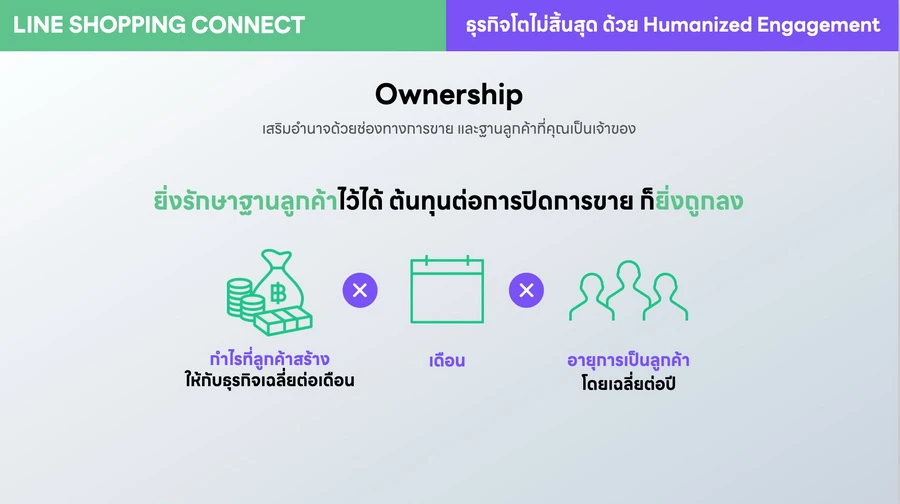 • Ownership การเสริมอำนาจให้ร้านค้าเป็นเจ้าของช่องทางและฐานลูกค้าของตัวเอง เพื่อเพิ่มความสามารถในการสื่อสารและเข้าถึงลูกค้า ช่วยลดต้นทุนการปิดการขายให้ถูกลง