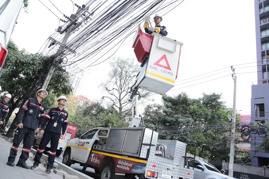 ร่วมยกระดับมาตรฐานการติดตั้งสายสื่อสารบนเสาไฟฟ้า…ทรู คอร์ปอเรชั่น โดย นายจักรกฤษณ์ อุไรรัตน์ หัวหน้าคณะผู้บริหารด้านกิจการองค์กร นำทีมวิศวกรลงพื้นที่ร่วมปฏิบัติการสนับสนุน การไฟฟ้านครหลวง (MEA) โดย นายวิลาศ เฉลยสัตย์ ผู้ว่าการฯ, พร้อมด้วย กรุงเทพมหานคร โดย นายวิศณุ ทรัพย์สมพล รองผู้ว่าราชการฯ และสำนักงาน กสทช., สำนักงานตำรวจแห่งชาติ รวมทั้งภาคีเครือข่าย เดินหน้าจัดระเบียบสายสื่อสารย่านถนนเอกมัย (ซอยสุขุมวิท 63) ตั้งแต่แยกถนนเพชรบุรี ถึง แยกถนนสุขุมวิท รวมระยะทาง 5.5 กิโลเมตร โดยรื้อถอนสายสื่อสารเก่าที่ไม่ได้ใช้งานบนเสาไฟฟ้า และสายสื่อสารที่ไม่ได้ติดตั้งผ่านคอนสายสื่อสารที่ช่วยยึดสายสื่อสารให้เป็นไปตามมาตรฐานและหลักเกณฑ์ของ MEA เพื่อให้เกิดประโยชน์ด้านความปลอดภัย มีทัศนียภาพที่เรียบร้อยสวยงาม ส่งเสริมภาพลักษณ์ของกรุงเทพมหานคร ทั้งนี้ ทรู คอร์ปอเรชั่น มุ่งนำศักยภาพด้านเทคโนโลยีดิจิทัลขับเคลื่อนสังคมและประเทศ เพื่อเติมเต็มดิจิทัลไลฟ์สไตล์ใหม่ๆ ของคนไทย โดยยึดหลักการดำเนินธุรกิจบนพื้นฐานความยั่งยืนและรับผิดชอบต่อสังคม โดยที่ผ่านมาได้ให้ความร่วมมือในการดำเนินการร่วมกับหน่วยงานภาครัฐและเอกชนมาอย่างต่อเนื่อง เพื่อประโยชน์ต่อสังคมและประเทศชาติ ให้สามารถรองรับเทคโนโลยีแห่งอนาคตพร้อมใช้โครงสร้างพื้นฐานโทรคมนาคมได้อย่างยั่งยืนและเกิดประโยชน์สูงสุดต่อไป