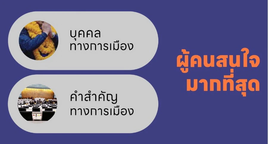 1) การเมือง การเลือกตั้งในปีที่ผ่านมาถือเป็นวาระสำคัญของประเทศที่ทำให้เรื่องการเมืองอยู่ในความสนใจของคนทุกช่วงวัย ตามด้วยเหตุการณ์สำคัญที่เกี่ยวข้องเกิดขึ้นต่อเนื่องมาจนถึงปัจจุบัน เรียกได้ว่าร้อนระอุแบบไม่แผ่ว ส่งให้คอนเทนต์การเมืองถูกอ่านรวมกว่า 514 ล้านวิว นอกจากนั้น ยอดวิวการเข้าชมไลฟ์นับผลคะแนนเลือกตั้งยังพุ่งสูงเป็นประวัติการณ์กว่า 5.4 ล้านวิว โดยบุคคลและคำสำคัญที่ถูกคลิกอ่านมากที่สุด ได้แก่ “ก้าวไกล - พิธา – ทักษิณกลับไทย - ดิจิทัลวอลเล็ต และ สมรสเท่าเทียม”