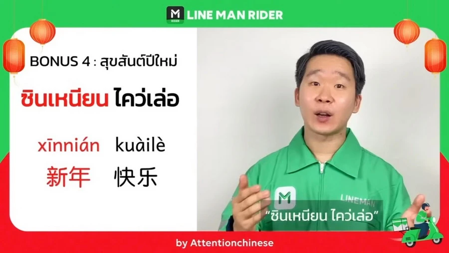 • ไรเดอร์: จัดทำสื่อสอนภาษาจีนออนไลน์แก่ไรเดอร์ เน้นคำทักทายและประโยคพื้นฐานที่จำเป็นในการใช้สื่อสาร เพื่อสร้างความประทับใจในทุกมื้ออาหารให้แก่นักท่องเที่ยวช่วงเทศกาลตรุษจีน รวมถึงมอบอั่งเปาน้ำมันเครื่อง พร้อมทั้งบริการเปลี่ยนถ่ายน้ำมันเครื่องฟรีให้แก่ไรเดอร์เพื่อเป็นของขวัญในช่วงเทศกาลนี้ด้วย