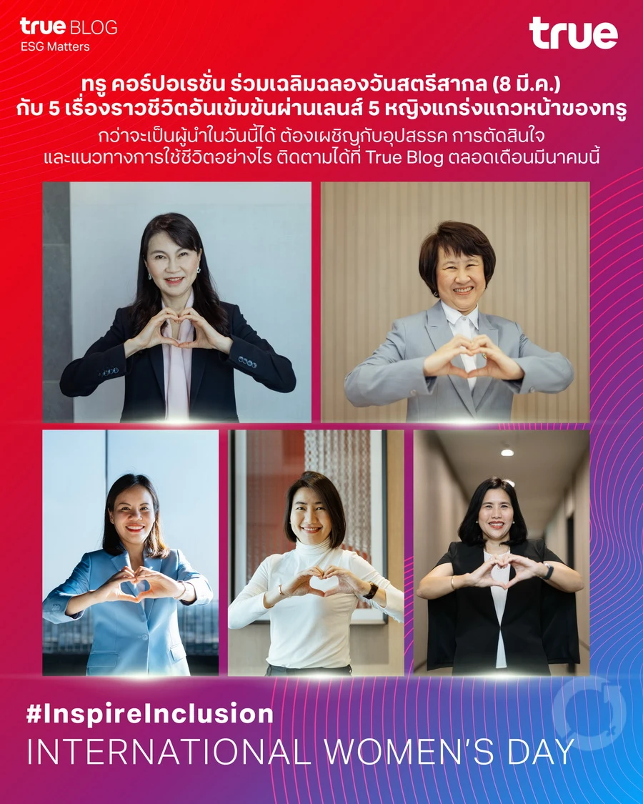 พร้อมติดตามเรื่องราวชีวิตอันเข้มข้นผ่านเลนส์ 5 หญิงแกร่งแถวหน้า กว่าจะเป็นผู้นำในวันนี้ได้ ต้องเผชิญกับอุปสรรค การตัดสินใจ และแนวทางการใช้ชีวิตอย่างไร ติดตามได้ที่ True Blog ตลอดเดือนมีนาคมนี้