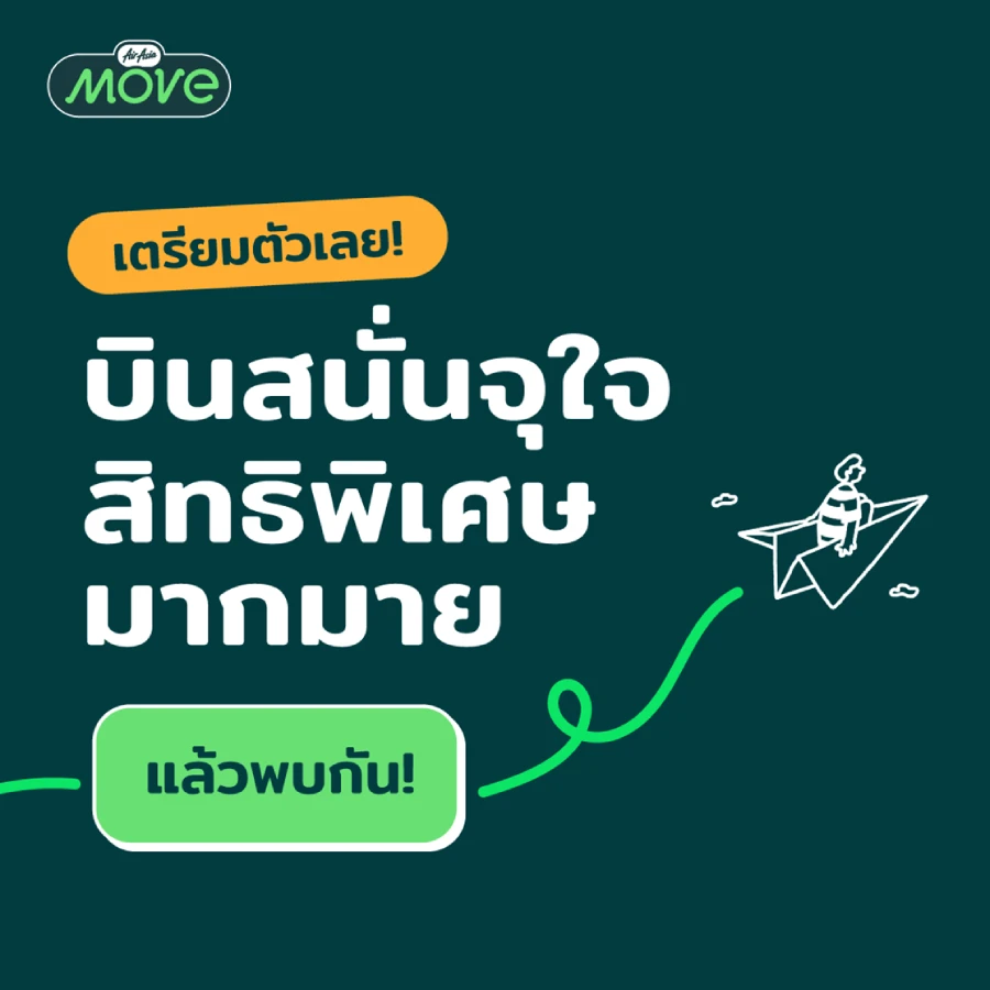 ติดตามข้อมูลข่าวสารที่อัปเดตก่อนใครจาก AirAsia MOVE โดยติดตาม Instagram @airasiamove.th และ TikTok @airasiamove.th รวมทั้ง Facebook @airasiamove.th เพื่อรับข่าวสารล่าสุด สำหรับประสบการณ์การท่องเที่ยวและการเดินทางที่ราบรื่น ดาวน์โหลดแอป AirAsia MOVE ของคุณจาก Apple App Store และ Google Play Store หรือ Huawei AppGallery
