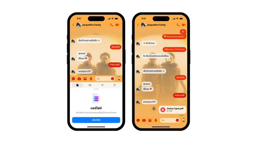ผู้ใช้ไม่จำเป็นต้องพึ่งพาอีเมลในการส่งไฟล์ขนาดใหญ่อีกต่อไป ขณะใช้งาน Messenger ผู้ใช้สามารถเลือกปุ่มเครื่องหมายบวก ‘+’ และเลือกไฟล์ที่มีขนาดสูงสุด 100MB เพื่อแชร์ระหว่างการสนทนาผ่านการแชท โดยฟีเจอร์ดังกล่าวสามารถรองรับไฟล์ได้หลากหลายรูปแบบ ไม่ว่าจะเป็น Word, PDF, Excel, และ ZIP