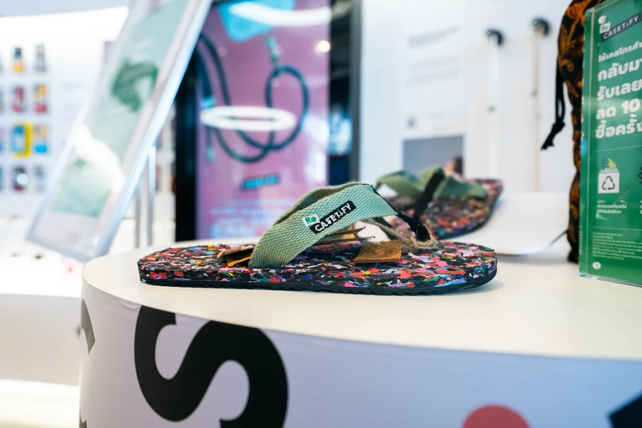 นับตั้งแต่เปิด CASETiFY Studio แห่งแรกในไทยเมื่อกันยายน 2022 มีผู้เข้าร่วมโครงการ Re/CASETiFY นับหมื่นคนนำเคสมือถือเก่าที่ไม่ได้ใช้แล้วมาหย่อนลงกล่อง Re/CASETiFY ที่ CASETiFY Studio กว่า 10,000 ชิ้น ทั้งที่สาขา CentralWorld และ Emsphere ในปีนี้ CASETiFY ประเทศไทย จึงบรรเจิดไอเดียเก๋ นำเคสมือถือเก่าเหล่านี้ไปแปรรูป (Upcycle) เป็น รองเท้าแตะ “Re/CASETiFY Sandals” จำนวน 500 คู่ ร่วมกับ โครงการรองเท้าทะเลจร (Tlejourn Shoes) ซึ่งเป็นโครงการแบบไม่หวังผลกำไรที่เปลี่ยนขยะจากทะเลเป็นพื้นรองเท้า บนความร่วมมือระหว่างอาสาสมัครกลุ่ม Trash Hero นักวิทยาศาสตร์ด้านพอลิเมอร์ จากมหาวิทยาลัยสงขลานครินทร์ วิทยาเขตปัตตานี แบรนด์แฟชั่นดีไซน์ และชุมชนชาวปัตตานี โดยรองเท้าแตะ “Re/CASETiFY Sandals” 1 คู่ ประกอบไปด้วยชิ้นส่วนจากเคสมือถือเก่า 7 เคส และขยะจากทะเลกว่า 20 กิโลกรัม เท่ากับว่ารองเท้า Re/CASETiFY Sandals ทั้ง 500 คู่นี้ ได้ช่วยลดขยะในท้องทะเลถึง 1 ตัน (1,000 กิโลกรัม) เลยทีเดียว และทุกคนก็สามารถร่วมเป็นส่วนหนึ่งของโครงการนี้ได้ เพียงหย่อนเคสเก่าที่ร้าน CASETiFY Studio ทั้งสองสาขา รับส่วนลดทันที 10% สำหรับการซื้อสินค้า CASETiFY (ตามเงื่อนไขที่กำหนด) และเพื่อเป็นการขอบคุณ CASETiFY ประเทศไทย ชวนรับรองเท้า Re/CASETiFY Sandal ฟรี 1 คู่ เมื่อหย่อนเคสเก่า ซื้อเคสใหม่ ตั้งแต่ 18 เมษายน 2567 เป็นต้นไป หรือจนกว่าของจะหมด