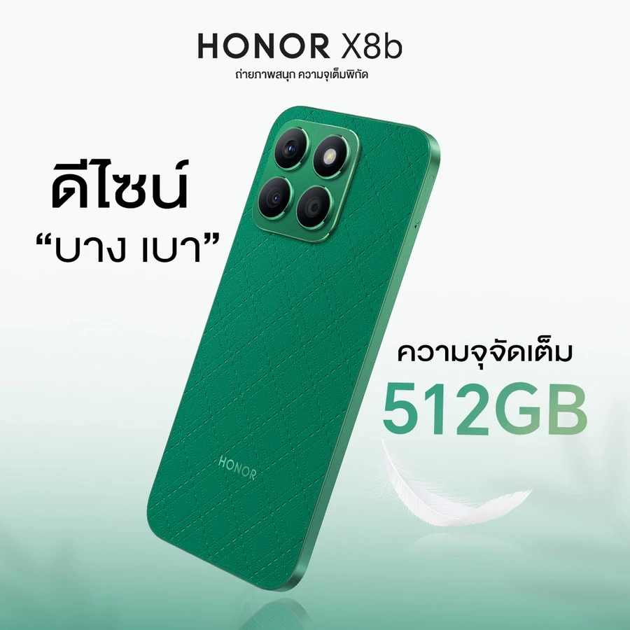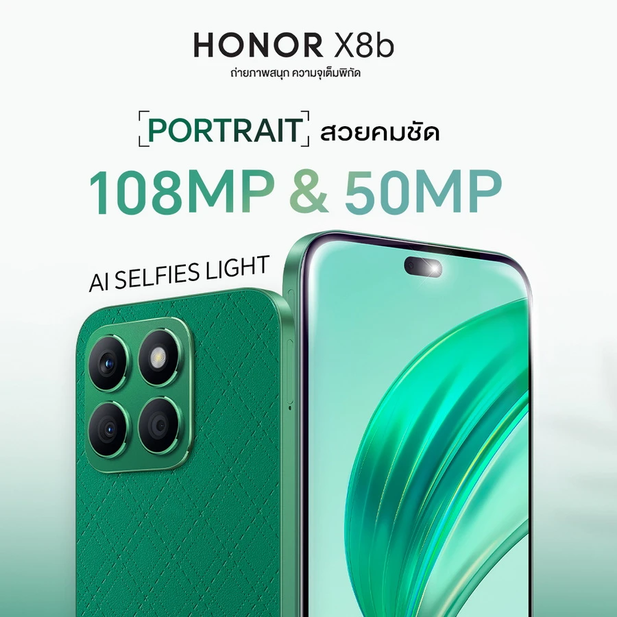 ออเนอร์ (HONOR) ผู้ให้บริการอุปกรณ์อัจฉริยะชั้นนำระดับโลก ประกาศเปิดตัวรุ่นใหม่ล่าสุด HONOR X8b สมาร์ตโฟนดีไซน์พรีเมียมเรียบหรู ภายใต้คอนเซปต์ “ถ่ายภาพสนุก ความจุเต็มพิกัด” โดยรุ่นนี้เป็นสมาร์ตโฟนที่อัดแน่นไปด้วยคุณภาพและนวัตกรรมที่ทันสมัย ในราคาคุ้มค่า เน้นตอบโจทย์ทุกความต้องการของคนรุ่นใหม่โดยเฉพาะสายคอนเทนต์ครีเอเตอร์ ด้วยเทคโนโลยีกล้องหลังความละเอียดสูง พร้อมระบบกล้อง 3 ตัว ได้แก่ กล้องหลักความละเอียด 108MP, กล้อง Wide+Depth ความละเอียด 5MP และกล้องมาโครความละเอียด 2MP กล้องหน้าเซลฟี่ 50 ล้านพิกเซล พร้อม Soft Flashlight เพื่อให้ผู้ใช้เพลิดเพลินกับการถ่ายภาพและได้ภาพถ่ายที่สวยสมบูรณ์แบบในทุกโมเมนต์ ผสานหน้าจอ AMOLED ขนาดใหญ่ 6.7 นิ้ว ตลอดจนให้ความจุมากที่สุดถึง 512GB เมื่อเทียบกับสมาร์ตโฟนทั่วไปในเรทราคาใกล้เคียงกัน สามารถเป็นเจ้าของได้ในราคาคุ้มค่าเพียง 7,999 บาท เริ่มจำหน่ายวันแรกตั้งแต่วันที่ 10 พฤษภาคม 2567 เป็นต้นไป