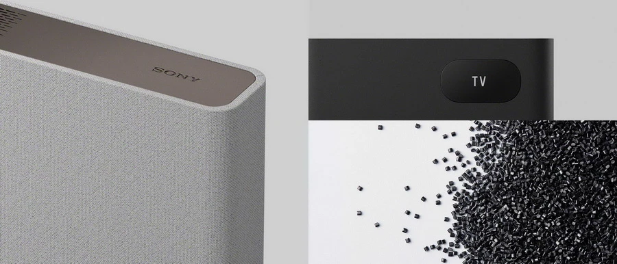 ด้วยการเลือกใช้วัสดุอาจมีผลต่อคุณภาพเสียง ซึ่งโซนี่ได้ใช้เวลาหลายปีในการพัฒนาพลาสติกรีไซเคิลที่มีเอกลักษณ์เฉพาะ โดยคำนึงถึงสิ่งแวดล้อม และต้องเอื้อต่อการนำมาใช้ในผลิตภัณฑ์เครื่องเสียงคุณภาพสูง ผลิตภัณฑ์ BRAVIA Theatre ได้ใช้พลาสติกรีไซเคิล22ที่มีคุณลักษณะเฉพาะ ที่ให้คุณภาพเสียงที่ดีเยี่ยมแม้จะลดการใช้วัสดุจากพลาสติกใหม่ก็ตาม ซึ่งวัสดุที่เป็นผ้าที่ใช้ใน BRAVIA Theatre ก็เป็นวัสดุรีไซเคิลจากขวด PET23 โซนี่ได้คัดสรรวัสดุอย่างพิถีพิถันเพื่อตอบโจทย์ในเรื่องคุณภาพเสียง การออกแบบ ผิวสัมผัส และสีที่เหมาะสมที่สุด
