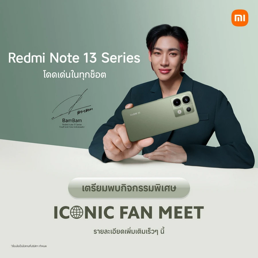 นอกจากนี้ ลูกค้าที่ซื้อ Redmi Note 13 Pro 5G สีใหม่ ‘Olive Green’ ยังได้ลุ้นรับสิทธิ์ร่วมกิจกรรมพิเศษ ‘ICONIC FAN MEET กับ BamBam’ ที่ประเทศมาเลเซียอีกด้วย6
