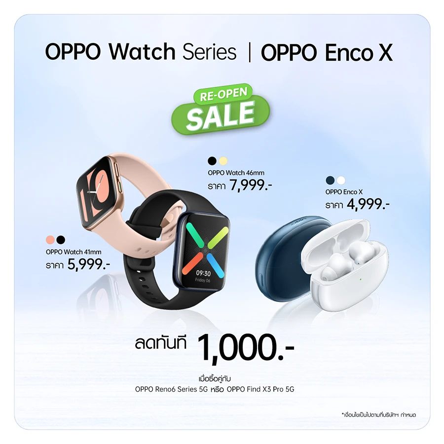 - เมื่อซื้อคู่กับ OPPO Watch 46mm พิเศษ 6,999 บาท จากปกติ 7,999 บาท