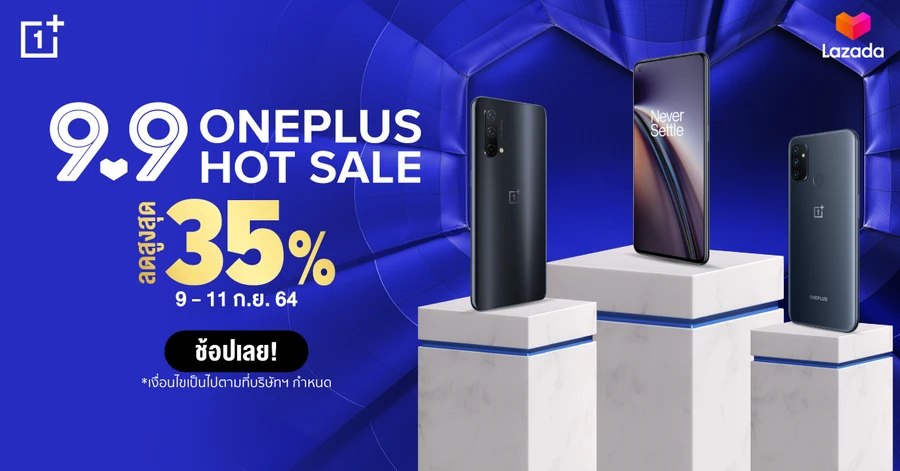 OnePlus 9.9 จัดโปรสุดแรง ทั้งสมาร์ทโฟน, หูฟังและอุปกรณ์เสริม ลดสูงสุด 50% พร้อมคูปองลดเพิ่มสูงสุด 1,000 บาท! จัดจำหน่ายสามช่องทางออนไลน์ Shopee, Lazada และ JD Central พร้อมของสมนาคุณอีกเพียบ ห้ามพลาดโดยเด็ดขาด!