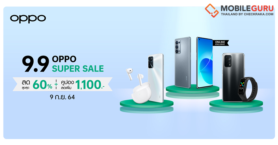 OPPO ต้อนรับเทศกาลช้อปปิ้งออนไลน์สุดยิ่งใหญ่ จัดโปรโมชั่นสุดคุ้มแบบไม่อั้น ผ่าน OPPO Super Sale 9.9 ด้วยส่วนลดสูงสุด 60% พร้อมคูปองส่วนลดสูงสุด 1,100 บาท และของสมนาคุณมากมาย มูลค่ารวมกว่า 118,388 บาท เฉพาะ 9 กันยายนนี้ ที่ OPPO Official Store บน Shopee, Lazada และ JD Central เท่านั้น
