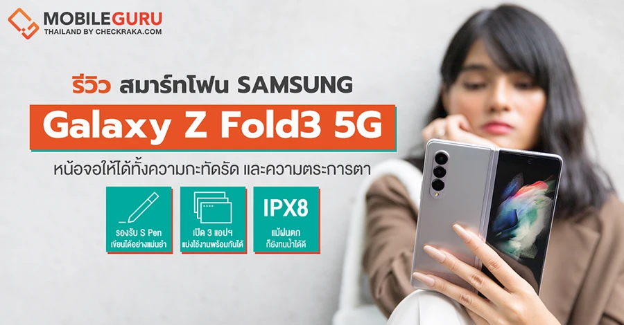 โดย Galaxy Z Fold3 5G มาพร้อมคุณสมบัติอันโดดเด่นกับการรวมหลากหลายนวัตกรรมที่เป็นครั้งแรกของโลกไว้ในเครื่องเดียว ทั้งการเป็นสมาร์ทโฟนหน้าจอพับได้ที่สามารถใช้งานร่วมกับ S Pen เทคโนโลยีกล้องซ่อนใต้จอบนหน้าจอขนาดใหญ่ 7.6 นิ้ว เพื่อการดูคอนเทนต์ได้เต็มอิ่มโดยไม่มีจุดรบกวนสายตา การสไลด์ใช้งานได้อย่างลื่นไหลด้วยอัตรารีเฟรชหน้าจอที่ 120Hz ทั้งหน้าจอด้านในและด้านนอก เสริมด้วยฟีเจอร์เพื่อความมัลติทาส์กกับการเปิดใช้งาน 3 แอปพลิเคชันได้พร้อมกัน นอกจากนี้ ยังมาพร้อมกับความทนทานที่มากขึ้นกว่าเดิมถึง 80% ด้วยเทคโนโลยีของหน้าจอหลักทำมากจาก Samsung Ultra Thin Glass ใช้งานแบบไร้กังวล ด้วยมาตรฐานการทนน้ำระดับ IPX8 วัสดุตัวเครื่องจาก Armor Aluminum และ Corning® Gorilla® Glass Victus™ ที่มาในดีไซน์โฉบเฉี่ยว พกพาและถือใช้งานด้วยมือเดียวสะดวกยิ่งขึ้น