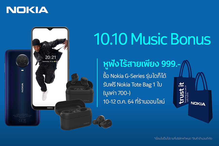 ฟรี! กระเป๋าผ้า Nokia มูลค่า 700 บาท เมื่อซื้อ Nokia G10 หรือ Nokia G20