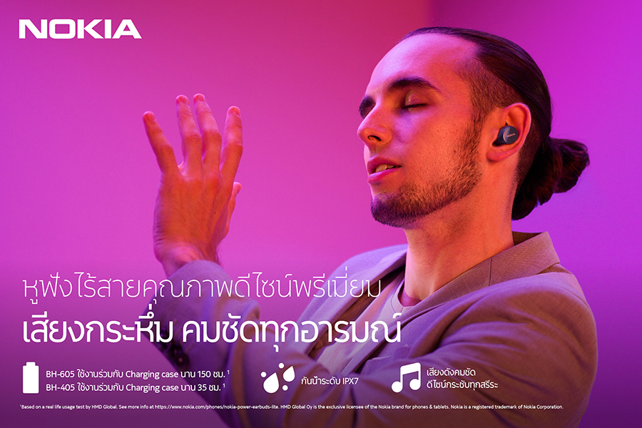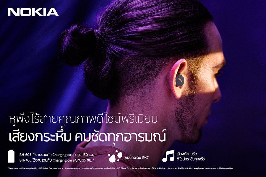 HMD Global เจ้าของลิขสิทธิ์การจัดจำหน่ายสมาร์ทโฟน ฟีเจอร์โฟน และอุปกรณ์เสริมแบรนด์โนเกีย (Nokia) ส่งหูฟัง Nokia ไร้สาย Nokia Power Earbuds 2 รุ่น พร้อมยกทัพขบวนสมาร์ทโฟนและฟีเจอร์โฟนรุ่นยอดฮิต ลดราคาสูงสุด 50% ในแคมเปญออนไลน์ 10.10 บน Shopee, Lazada และ JD Central อยู่ที่ไหนก็ช้อปได้ 24 ชั่วโมง 3 วันเท่านั้น! ในวันที่ 10 - 12 ต.ค. นี้ ชูไอเทมไม่ควรพลาด Nokia Power Earbuds (BH-605) และ Nokia Power Earbuds Lite (BH-405) หูฟังไร้สายคุณภาพสูง สุดรักษ์โลกด้วยวัสดุรีไซเคิล 100% คุณภาพเสียงคมชัดใสเคลียร์ ดีไซน์สวย น้ำหนักเบา แบตเตอรี่อึด กันน้ำ พร้อมเชื่อมต่อ Bluetooth 5.0 ขานรับไลฟ์สไตล์คนยุคนิวนอร์มอล ที่มีหูฟังเป็นไอเทมจำเป็นกับการทำงานและการเรียนออนไลน์ ราคาลดพิเศษสุด เริ่มต้นเพียง 999 บาท