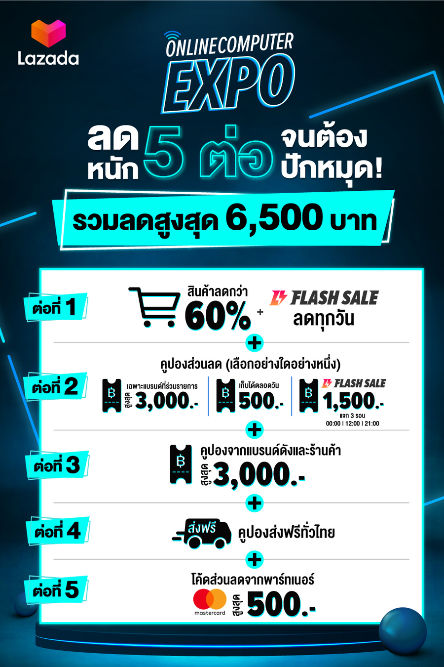 ลาซาด้าเสิร์ฟโปรปังขนาดนี้ ห้ามพลาดเด็ดขาด กับงาน Online Computer Expo พร้อมส่วนลดสุดคุ้มถึง 5 ต่อ นี่แค่น้ำจิ้มเท่านั้นนะ ยังมีสินค้าไอทีอีกมากมายให้เลือกซื้อ นักช้อปคนไหนสนใจสินค้าชิ้นไหน เตรียมพร้อมกดเข้ารถเข็น แล้วรอช้อปพร้อมกันในวันที่ 18-21 ตุลาคม 2564 นี้ที่ลาซาด้าเท่านั้น