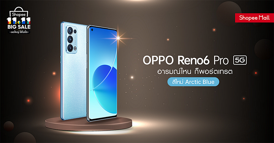 ตามมาด้วยสมาร์ทโฟนคู่หูตัวจริงของสายทำคอนเทนต์ OPPO Reno6 Pro 5G ให้บันทึกทุกช่วงเวลาในชีวิตด้วยรูปภาพและวิดีโอพอร์ตเทรตได้อย่างสวยงามลงตัวทุกมุมมองกับ AI 4 กล้องหลัง 50MP และเซ็นเซอร์ Sony IMX766 มาพร้อมดีไซน์อันเป็นเอกลักษณ์ช่วยให้จับได้อย่างถนัดมือ เปล่งประกายสะกดทุกสายตากับสีใหม่สุดพิเศษ 'Arctic Blue' ขับเคลื่อนด้วยชิป Qualcomm® Snapdragon™ 870 มอบประสบการณ์การเล่นเกมระดับมือโปร และแบตเตอรี่ 4500 mAh พร้อมด้วย RAM 12GB ที่สามารถขยายเพิ่มขึ้นได้ด้วยเทคโนโลยี RAM Expansion จาก OPPO เพื่อการใช้งานที่ลื่นไหลตลอดเวลา รีบหามาครอบครองได้แล้ววันนี้ใน Official Store ของ OPPO บนช้อปปี้ ในราคาเพียง 20,990 บาท จากราคาปกติ 22,990 บาท