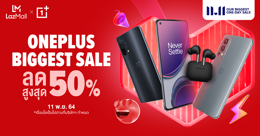 OnePlus 11.11 BIGGEST SALE ลดสูงสุด 50% เฉพาะวันที่ 11 พ.ย. 64 วันเดียวเท่านั้น