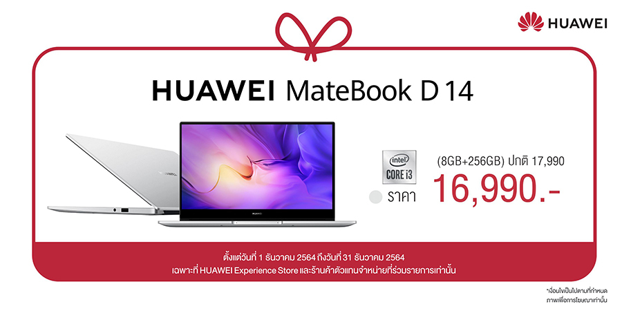 HUAWEI MateBook D 14 มาพร้อมชิปเซ็ต 10th Gen Intel® CoreTM i3 processor วางจำหน่ายในราคาเพียง 16,990 บาท จากราคาปกติ 17,990 บาท