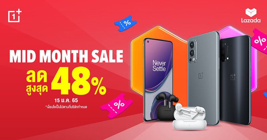 ต้อนรับเดือนมกราคมกับเทศกาลปีใหม่ ด้วยสมาร์ตโฟนใหม่จาก OnePlus ที่จัดโปรมาเป็นของขวัญรับต้นปี ได้เวลาช้อปกลางเดือนกันแล้ว !! ทั้งสมาร์ทโฟน, หูฟังและอุปกรณ์เสริม ลดแรงสูงสุด 50% พร้อมคูปองส่วนลดเพิ่มสูงสุด 500 บาท และดีลกลางเดือนสุดพิเศษอีกมากมาย จัดจำหน่ายช่องทางออนไลน์ Shopee และ Lazada เฉพาะวันที่ 15 - 16 มกราคม 2565 นี้เท่านั้น