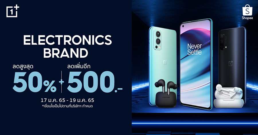 และกลับมาอีกครั้ง !! ลดกระหน่ำกับ OnePlus Electronics Brand Fest ขนสมาร์ทโฟนและไอเทมสุดฮิตลดจัดเต็มสูงสุด 50% พร้อมคูปองลดเพิ่มสูงสุด 500 บาท ต่อแวลาโปรพิเศษถึงวันที่ 17 - 19 ม.ค. 65 นี้! ที่ OnePlus official store บน Shopee ไปช้อปกันเลย >> https://bit.ly/3toWKUb