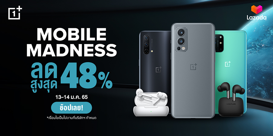 Mobile Madness x OnePlus ลดสูงสุด 48% เฉพาะวันที่ 13 - 14 ม.ค. 65 นี้เท่านั้น!