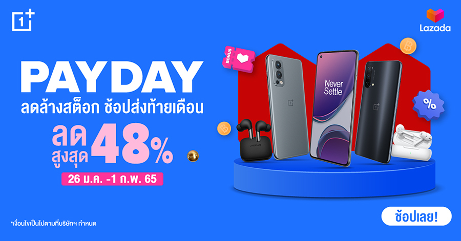 ช้อปมันส์วันเงินเดือนออกกับ OnePlus Pay Day เฉพาะวันที่ 26 ม.ค. - 1 ก.พ. 2565 นี้ สมาร์ทโฟนและไอเทมสุดฮิตลดจัดเต็มสูงสุด 48% ช้อปกันได้บน OnePlus official store บน Lazada เตรียมกดใส่ตระกร้า รอไว้เลย ลุย! >> https://bit.ly/3KlJuFU