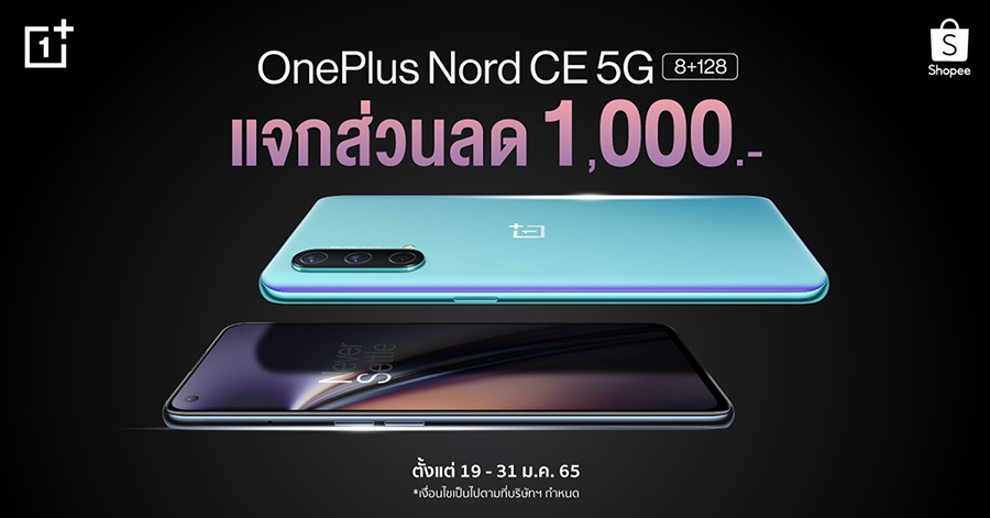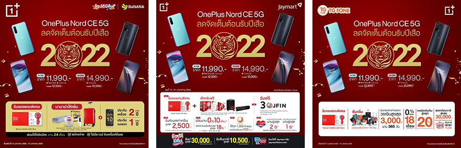 และดีลสุดพิเศษตลอดเดือนมกราคม สมาร์ทโฟน OnePlus Nord CE 5G ประสบการณ์ที่ดีกว่า จำหน่ายแล้ววันนี้ที่ BaNANA, Jaymart และ TG Fone ทั่วประเทศ ตั้งแต่วันนี้  – 31 มกราคม 2565 พร้อมรับของแถมสุดพิเศษอีกมากมาย