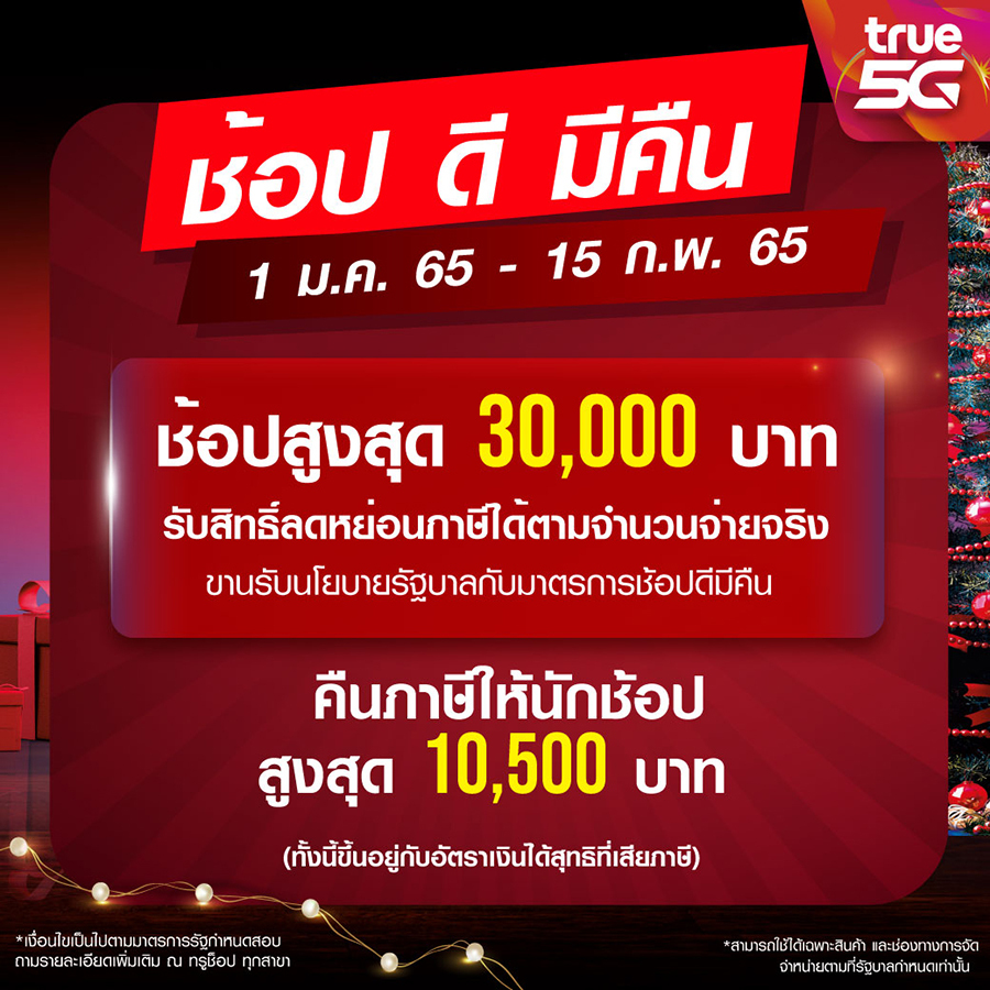 โค้งสุดท้าย สำหรับช้อปดีมีคืน ซื้อมือถือกับ True คุ้มกว่ากับโปรสุดปัง ซื้อมือถือ แถมยังใช้สิทธิ์ ช้อปดีมีคืน สามารถลดหย่อนภาษีได้ โดยเริ่มต้นเพียง 22 บาท